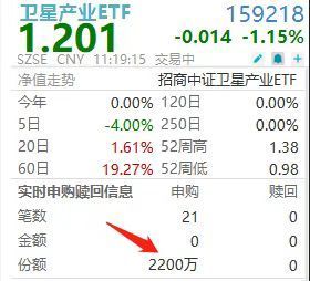 卫星产业近期多点催化。9月9日,截至11时19分,权重股中国卫星涨3.42%,表征板块的卫星产业ETF(159218)跌1.23%正规实盘股票配资平台,资金热度不减,据Wind Level2实时行情结合均价预估,盘中净流入约2700万,截至发稿,该基金获资金连续3日净流入。